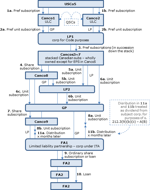 5. Canco1 is also the sole general partner in LP1 and Canco2 is the sole limited partner in LP1. LP1 is treated as a corporation for federal income tax purposes in the United States.