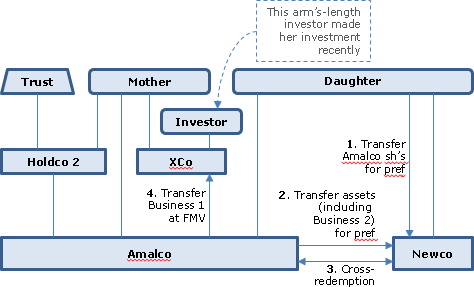 61. The purpose for Mother transferring her XXXXXXXXXX Holdco 1 Class A voting common shares to Holdco 2 on XXXXXXXXXX, as described in Paragraph 24, was to have Holdco 2 (as opposed to Mother) to receive a dividend on the XXXXXXXXXX Holdco 1 Class A voting common shares, as Daughter wanted to receive a dividend on her Holdco 1 Class B voting common shares to repay her shareholder loan owing to Holdco 1.