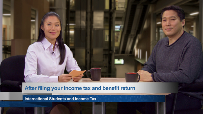 This segment gives international students studying in Canada an overview of when and how to file an income tax and benefit return. Information regarding previous returns, penalties, interest, tax packages, and filing options is also included.