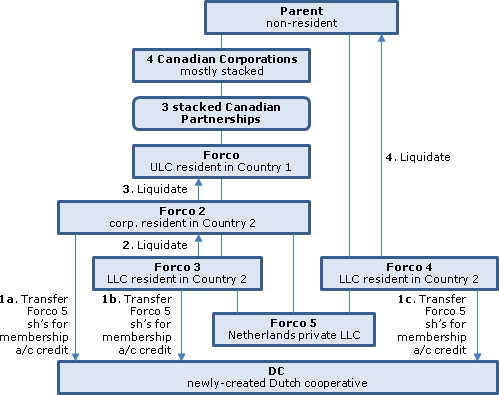 | Tax Topics - Income Tax Act - Section 85.1 - Subsection 85.1(3) | drop-down by the two Cdn. “shareholders” of Dutch co-op (DC) of FAs in consideration for proportionate “increases” in their membership interests considered to be for “shares” | 199 |