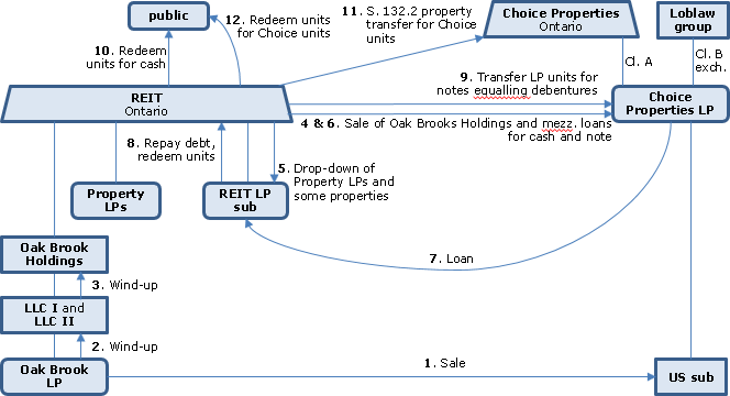 Cominar REIT through 10 Newco subsidiaries is offering cash or (at the Canmarc unitholder's option) Cominar units for Canmarc units, subject to the total number of Cominar units being capped at 16M but with no potential proration of the cash consideration. The Canmarc Units would be acquired through separate corporate subsidiaries as Cominar is a s. 108(2)(b) unit trust.